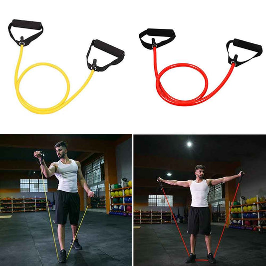 Elastique Musculation / Double Poignée / Jaune / 10 Lb
